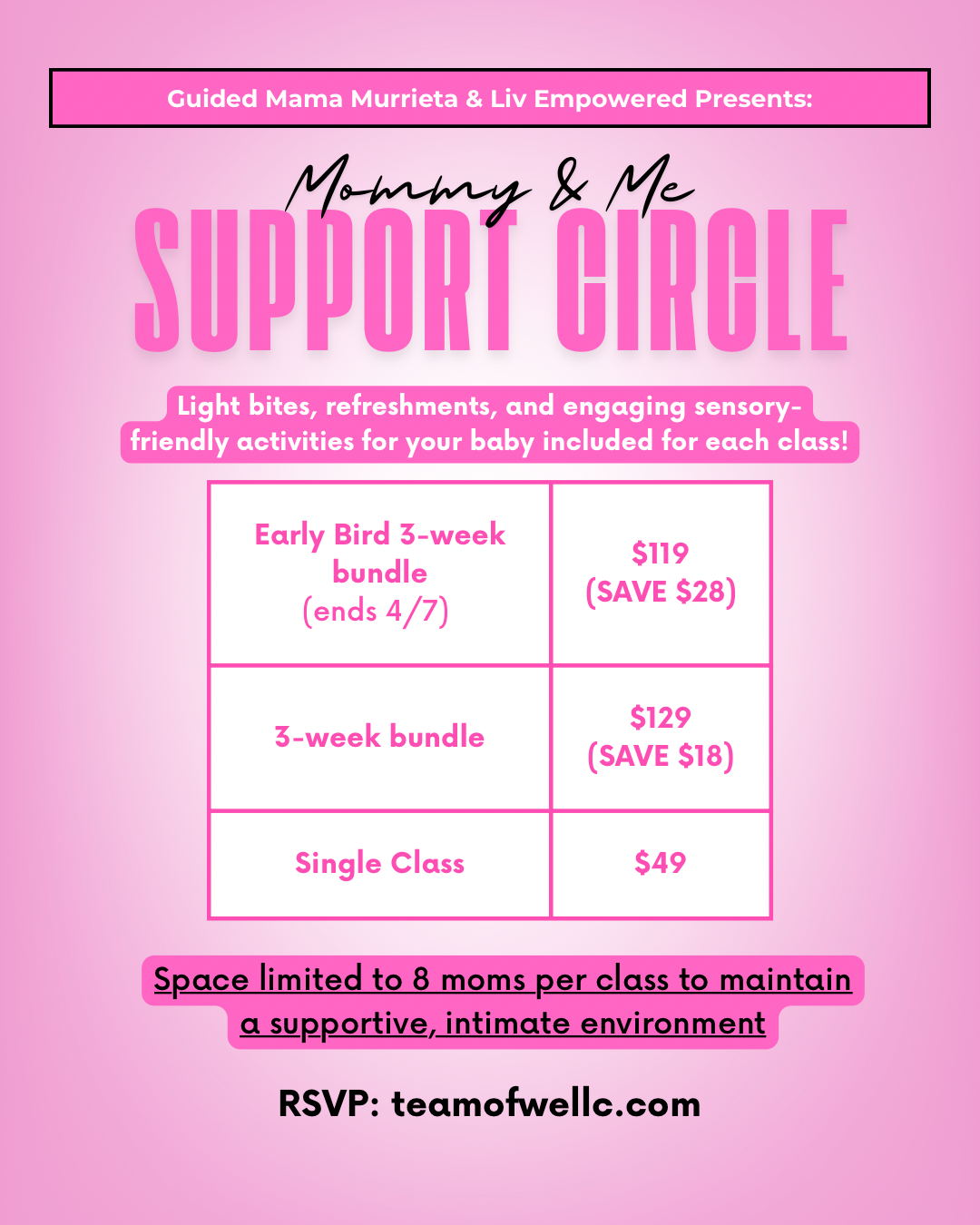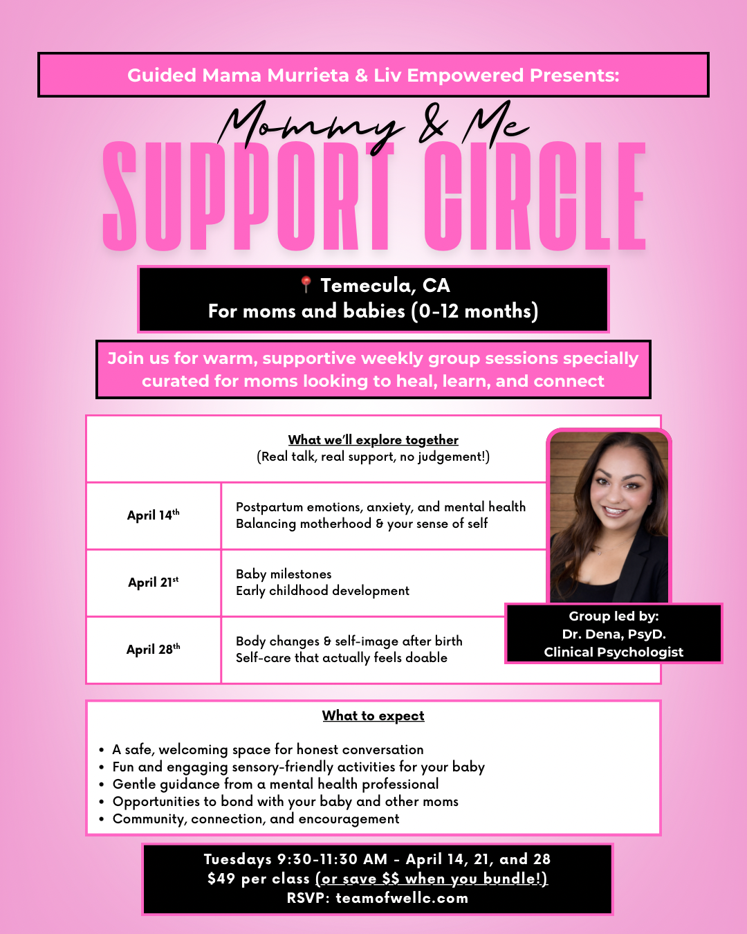 Join a warm, supportive weekly group designed for moms and their little ones to connect, share, and grow—together. Whether you're navigating sleepless nights, big emotions, or just looking for community, this space is for you.